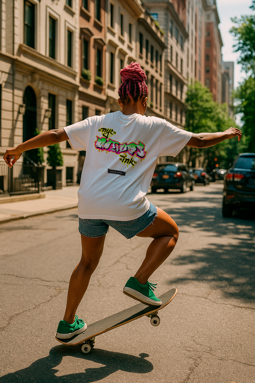 Born from borough beats and graffiti streets, this bold tee shouts “NYC Natives Ink” in vibrant colors. A tag-style explosion that lives and breathes urban culture. For those whose story started in spray paint.